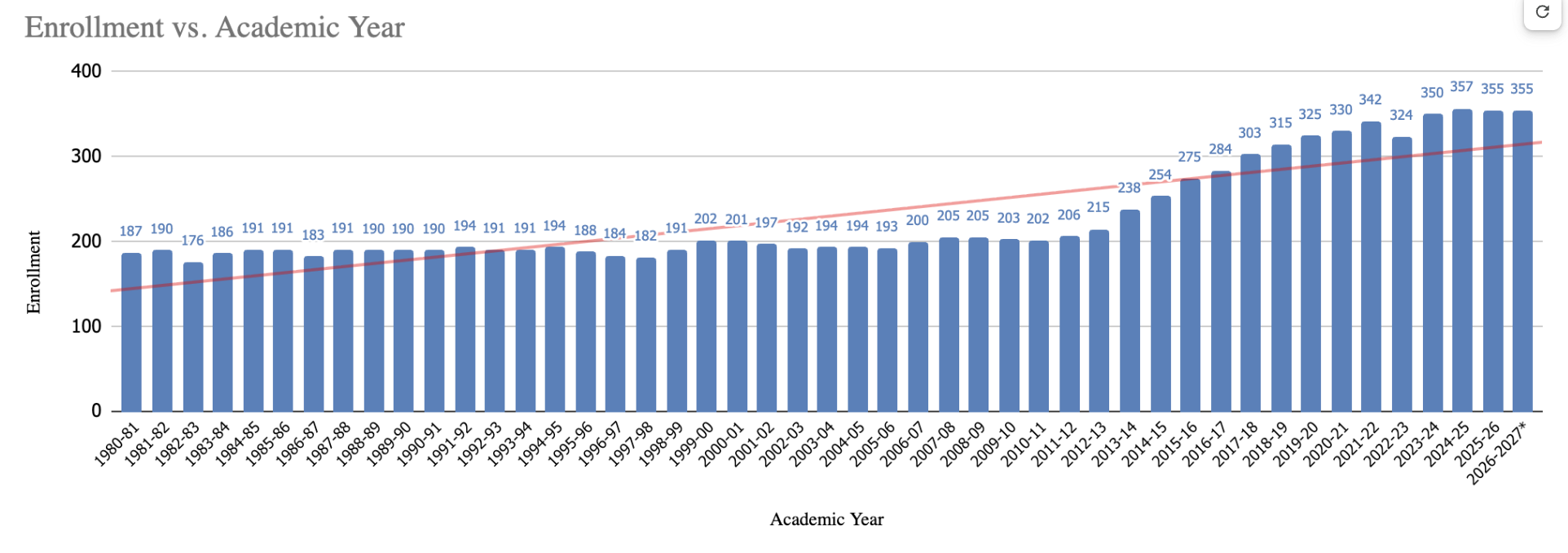 The School has invested in improved data tracking to strengthen enrollment management. (Optimized enrollment and student body composition)
