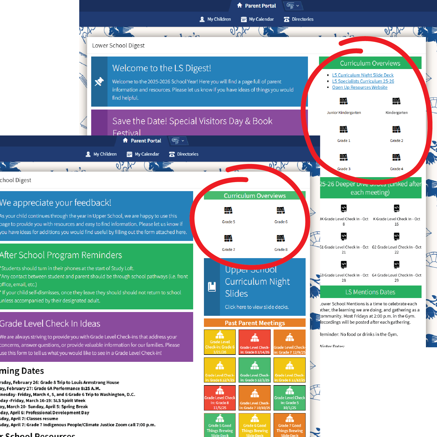 Both Upper School and Lower School are strengthening parent communication by making available curricular materials for all classes on the parent portal. (Curricular materials and student progress regularly communicated)