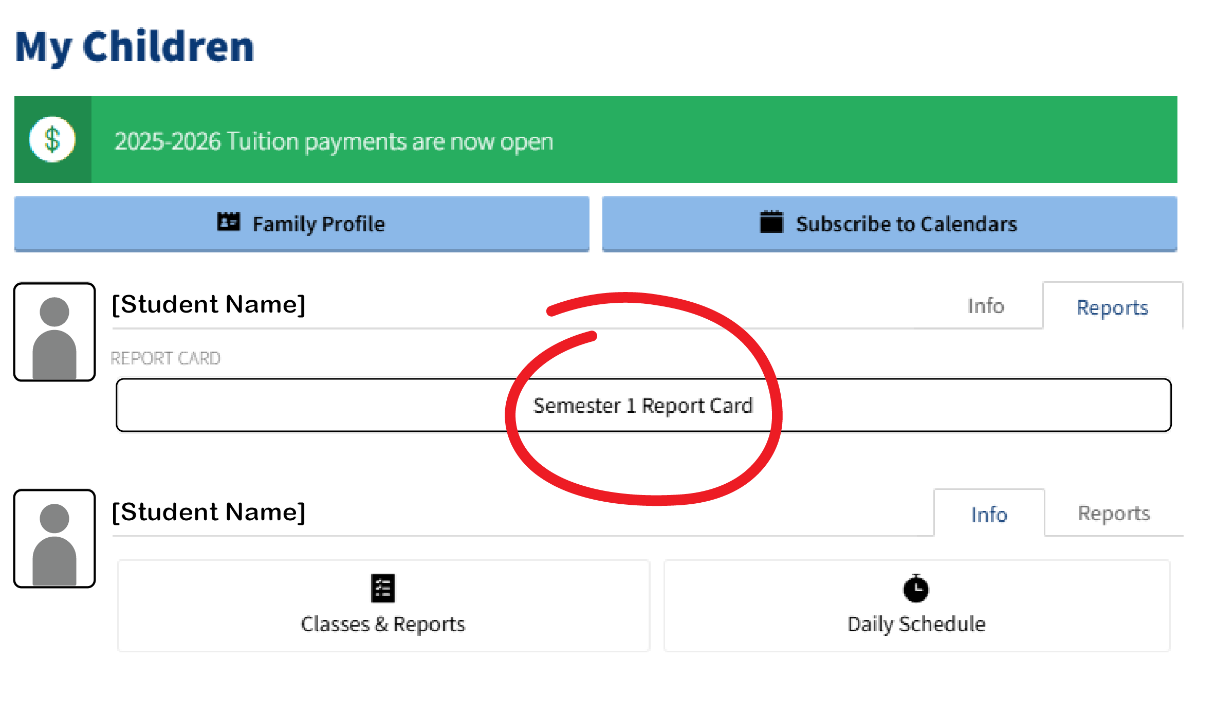 Parents experience enhanced communication, expanded resources, and up-to-date information through the parent portal on our new Veracross student information system (SIS). (Technological tools implemented to increase transparency and access for families)